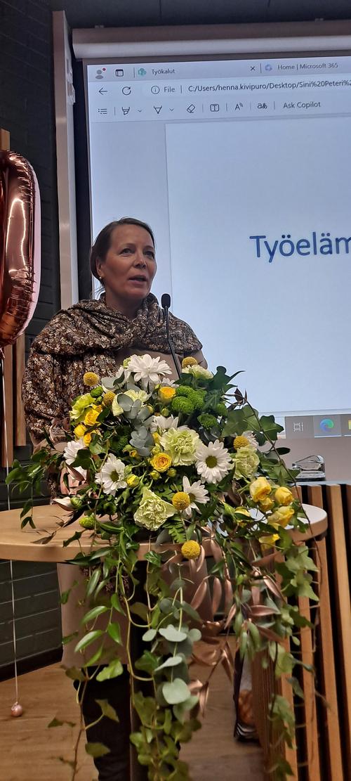 Vuoden lappilainen terveydenhoitaja kukitettiin juhlassa. Palkinnon sai tänä vuonna meän yhistyksen oma pitkäaikainen sihteeri Maija-Liisa Rautio, joka on yhdistyksen toiminnassa ollut jo vuosia varsinainen kulmakivi. Maikun työkavereilta tulleessa ehdotuksessa saimme kuulla, että myös omassa työyhteisössään YTHS:llä Maikku on tykätty persoona ja timanttinen terkka, jolla on aina lasi puoliksi täynnä. Lämpimät onnittelut Maikulle!
