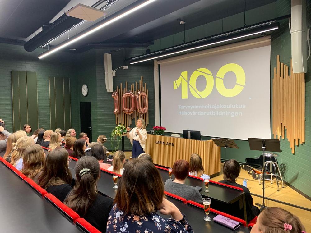 Suomen Terveydenhoitajaliiton Lapin terveydenhoitajayhdistys sai 12.11.2024 viettää yhdessä Lapin ammattikorkeakoulun kanssa Terveydenhoitajakoulutus 100 vuotta -juhlaa. Juhla järjestettiin yhtä aikaa Kemin ja Rovaniemen kampuksilla ja osa ohjelmasta lähetettiin etäyhteyksin toiselle kampukselle.